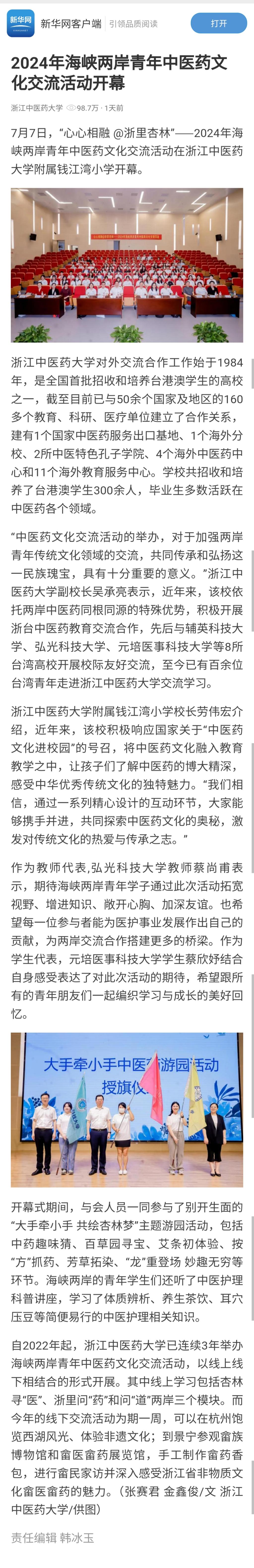 潮新闻:心心相融 @浙里杏林!2024年海峡两岸青年中医药文化交流活动开幕