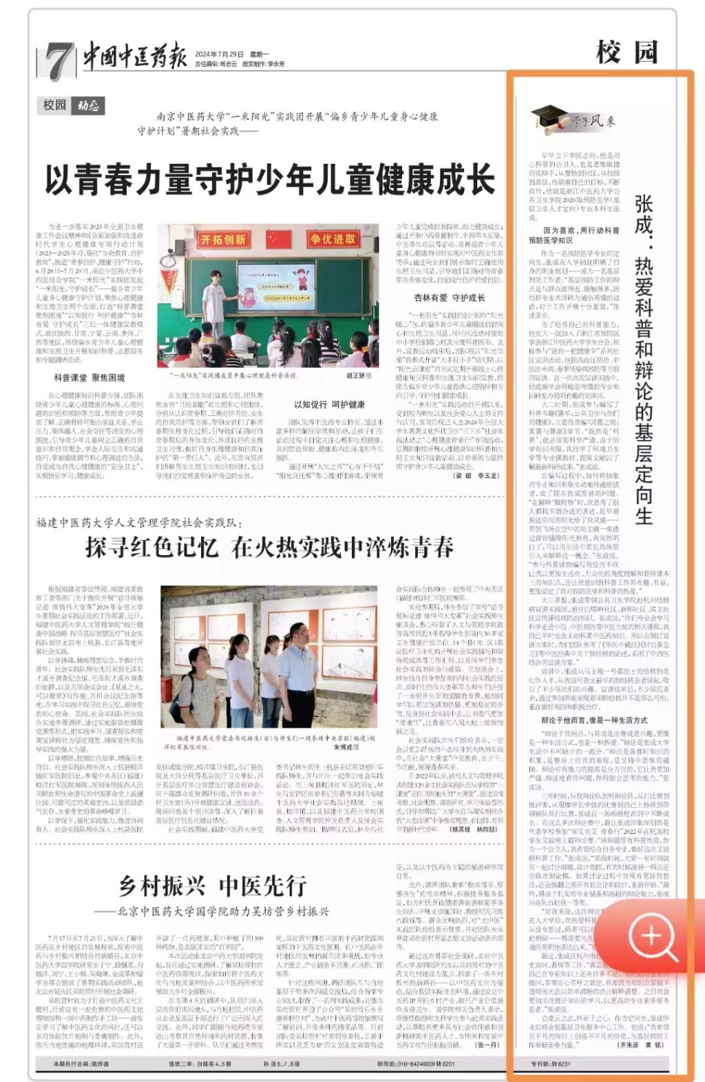 中国中医药报、中国中医药网:张成:热爱科普和辩论的基层定向生