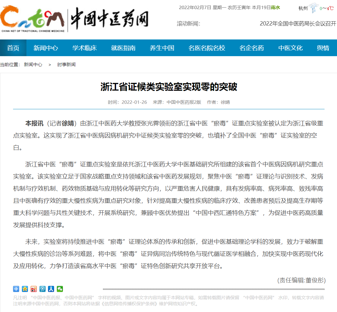 本报讯(记者徐婧)由久久精品一区二区三区四区教授张光霁领衔的浙江省中医“瘀毒”证重点实验室被认定为浙江省级重点实验室。这实现了浙江省中医病因病机研究中证候类实验室零的突破,也填补了全国中医“瘀毒”证实验室的空白。