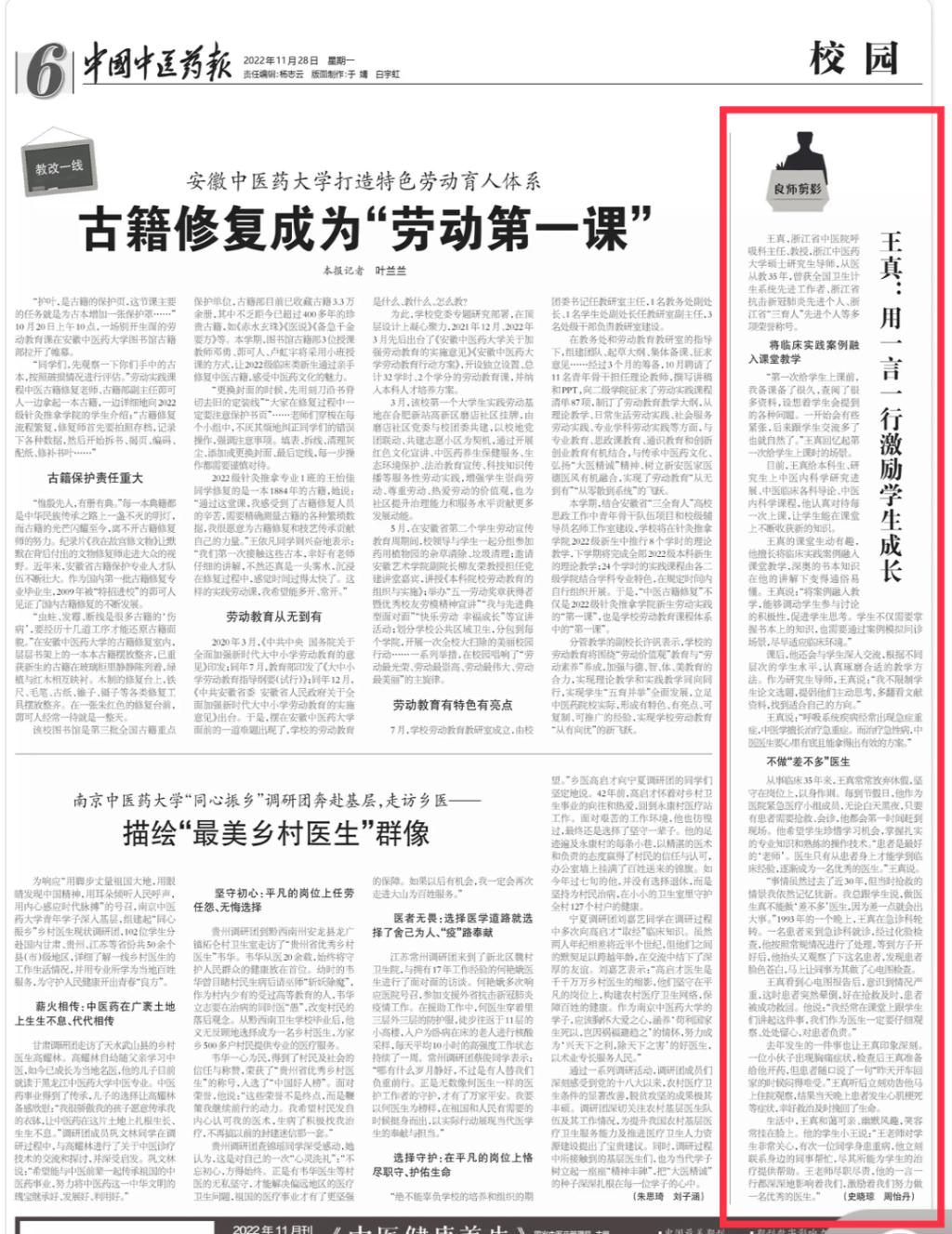 目前,王真给本科生、研究生上中医内科学研究进展、中医临床各科导论、中医内科学课程,他认真对待每一次上课,让学生能在课堂上不断收获新的知识。