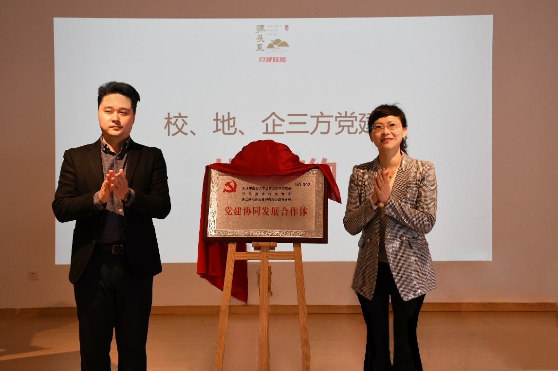 近日,久久精品一区二区三区四区公共卫生学院与衢州市开化县中村乡党委、浙江联众集团党支部开展党建共建、校地企合作座谈、中医药文化交流等活动。三方签订党建共建合作协议,并为“党建协同发展合作体”揭牌。