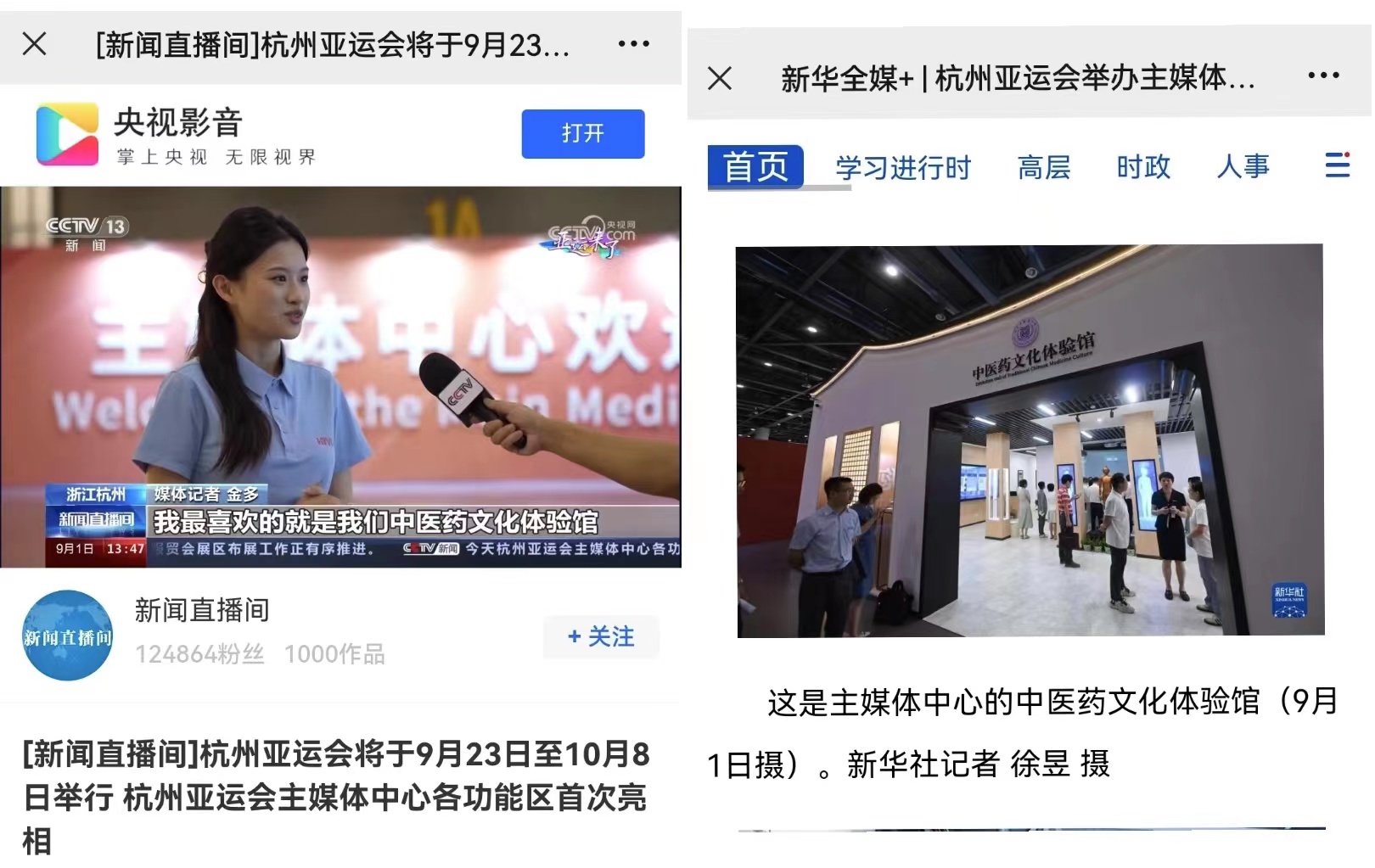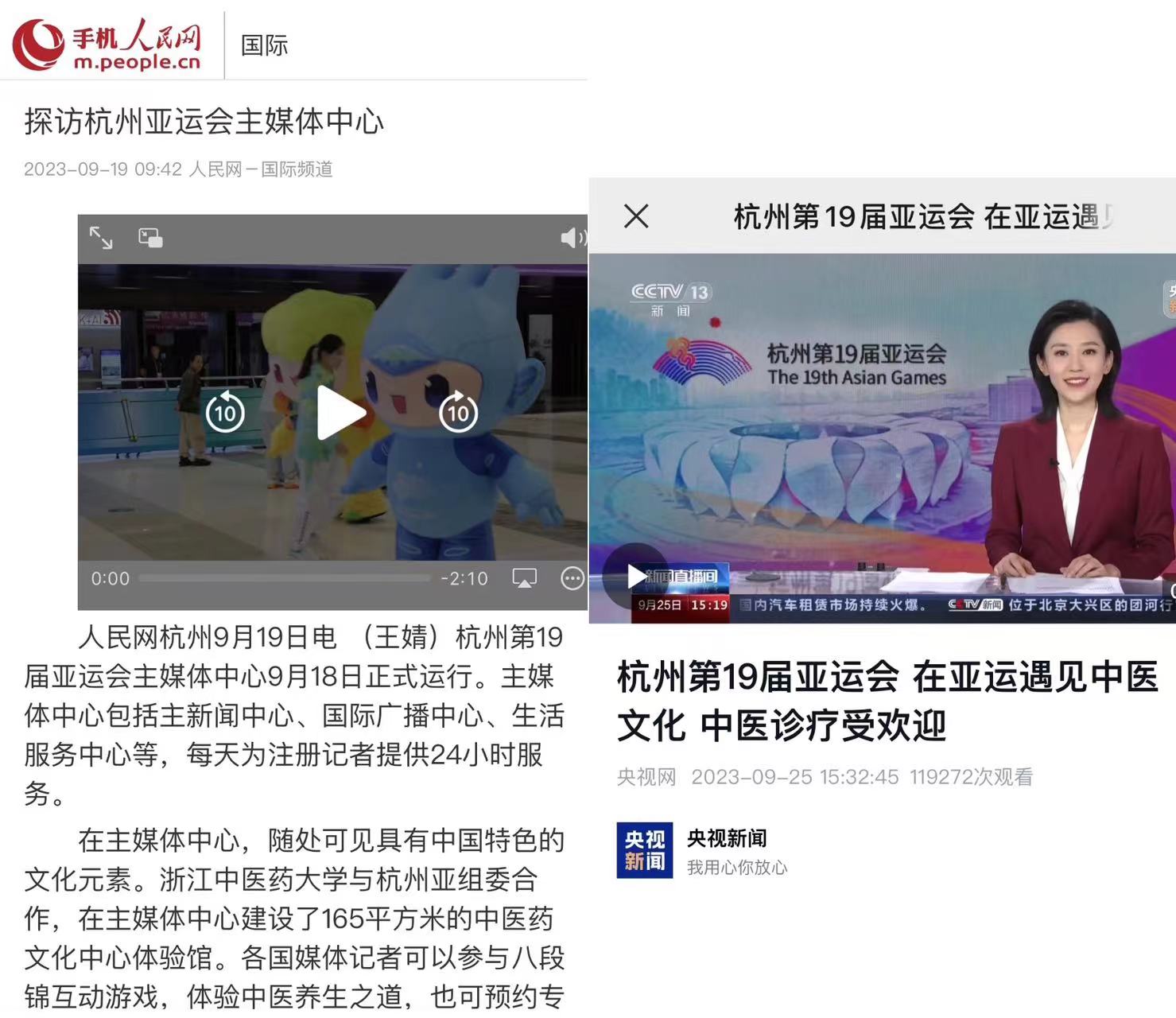 央视新闻:杭州第19届亚运会 在亚运遇见中医文化 中医诊疗受欢迎