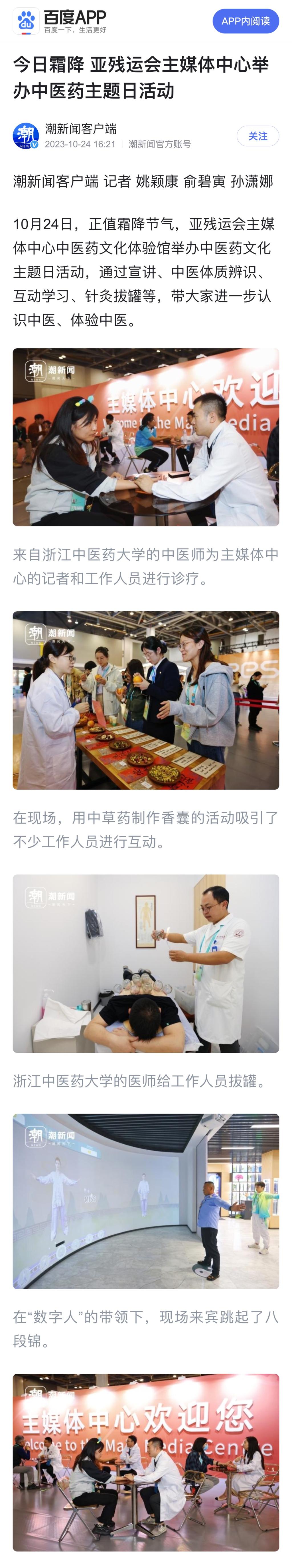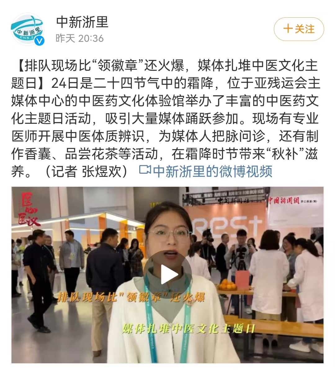 潮新闻:今日霜降 亚残运会主媒体中心举办中医药主题日活动