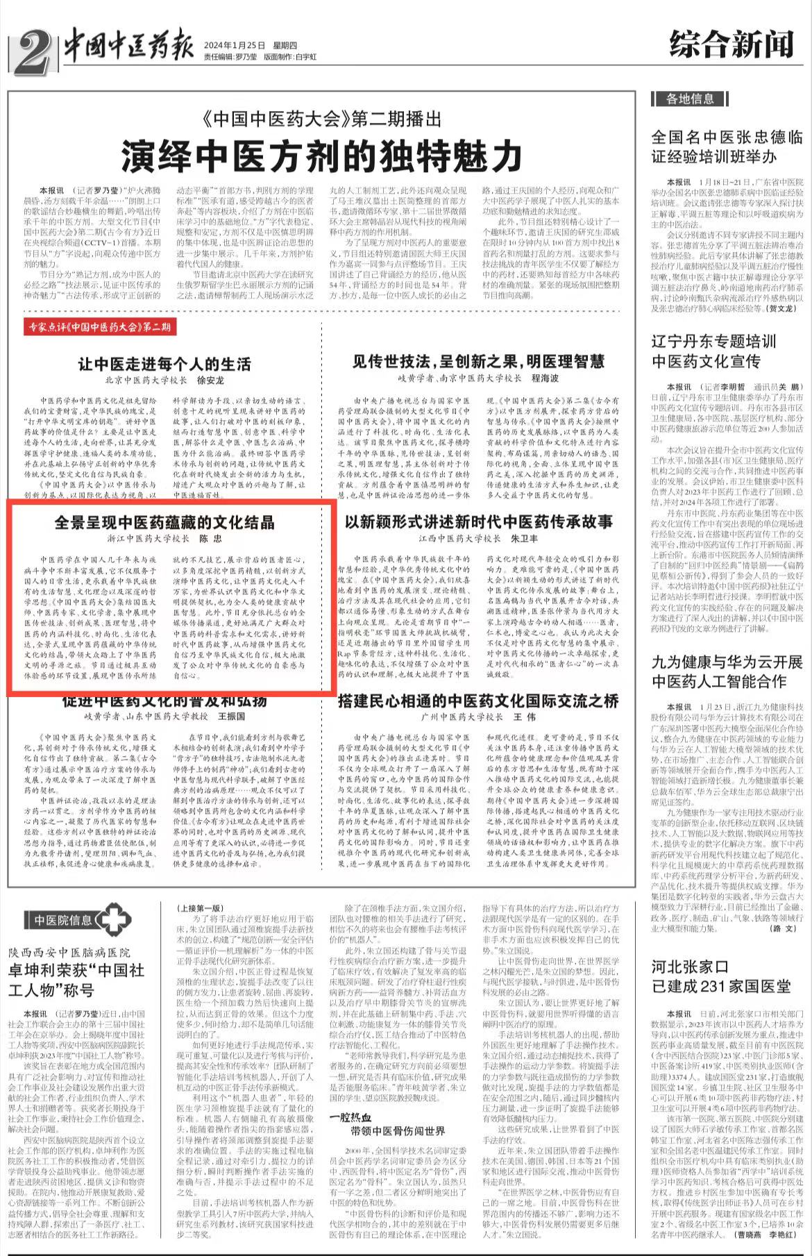 中国中医药报、中国中医药网:专家点评《中国中医药大会》 第二期全景呈现中医药蕴藏的文化结晶