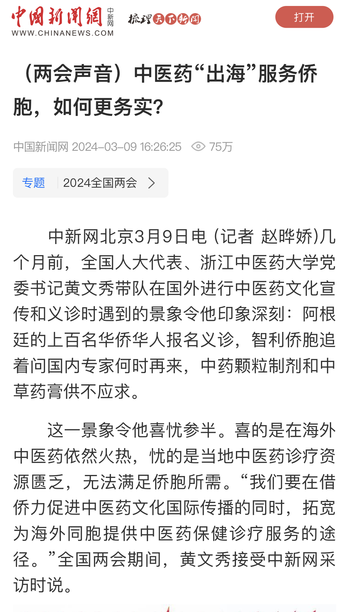 中国新闻网:(两会声音)中医药“出海”服务侨胞,如何更务实?