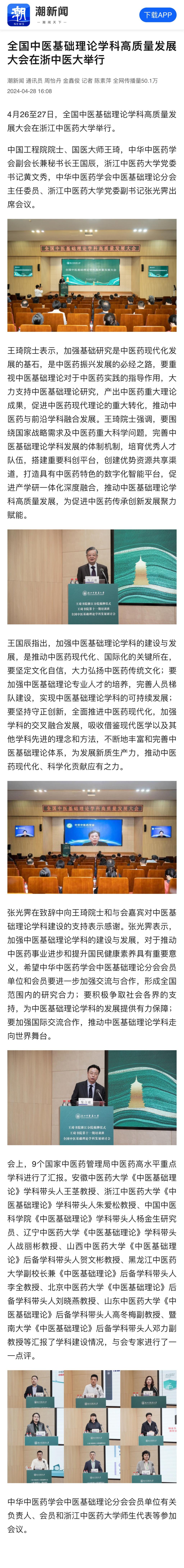 潮新闻:全国中医基础理论学科高质量发展大会在浙中医大举行