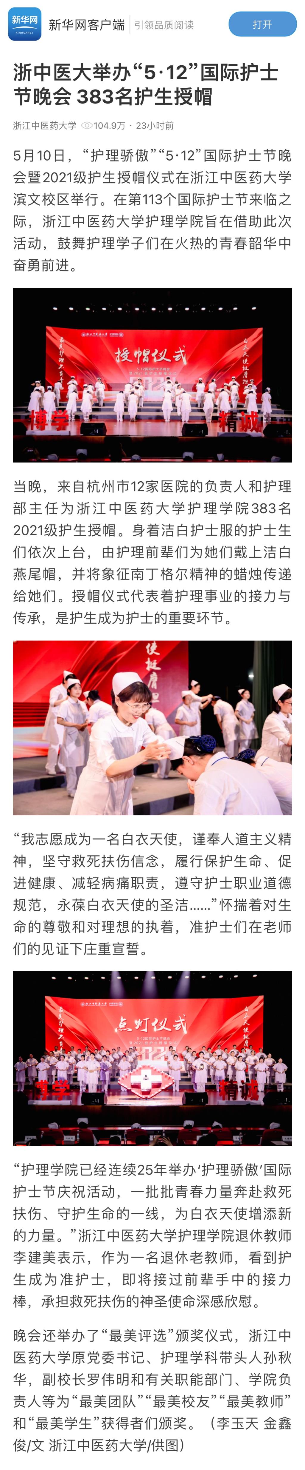浙中医大举办“5·12”国际护士节晚会 383名护生授帽