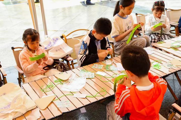 现场还设置手脚并用、沙包掷准、投壶讨彩等多个亲子互动游戏。在创意手工坊,现场工作人员指导孩子们制作各种手工制品,培养孩子们的动手能力和创造力。