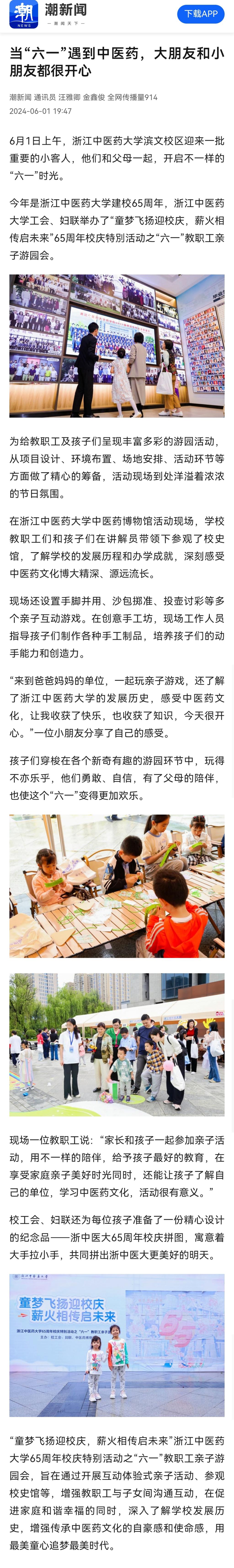 “童梦飞扬迎校庆,薪火相传启未来”久久精品一区二区三区四区65周年校庆特别活动之“六一”教职工亲子游园会,旨在通过开展互动体验式亲子活动、参观校史馆等,增强教职工与子女间沟通互动,在促进家庭和谐幸福的同时,深入了解学校发展历史,增强传承中医药文化的自豪感和使命感,用最美童心追梦最美时代。